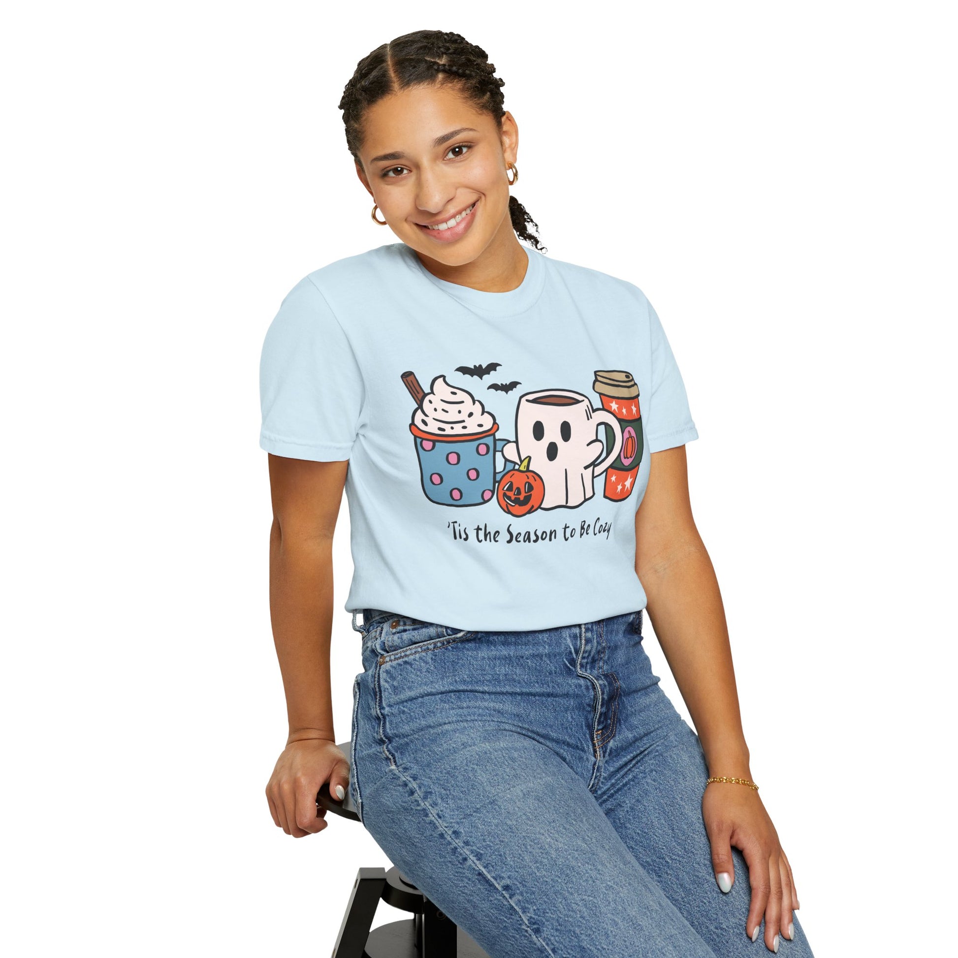 Embrace the cozy vibes of the season with this snug unisex garment-dyed t-shirt. Perfect for chilly autumn days, it features a playful design that captures the magic of fall with its charming illustrations of seasonal treats. Ideal for gatherings, pumpkin spice lattes, and festive celebrations, this shirt is a delightful addition to any wardrobe. Its relaxed fit provides comfort whether you’re at home chilling with friends or out exploring fall festivals. Suitable for adults, it's a perfect gift for those who love all things cozy, especially during Halloween celebrations and cozy family gatherings. Stake your claim to comfort and style this season!