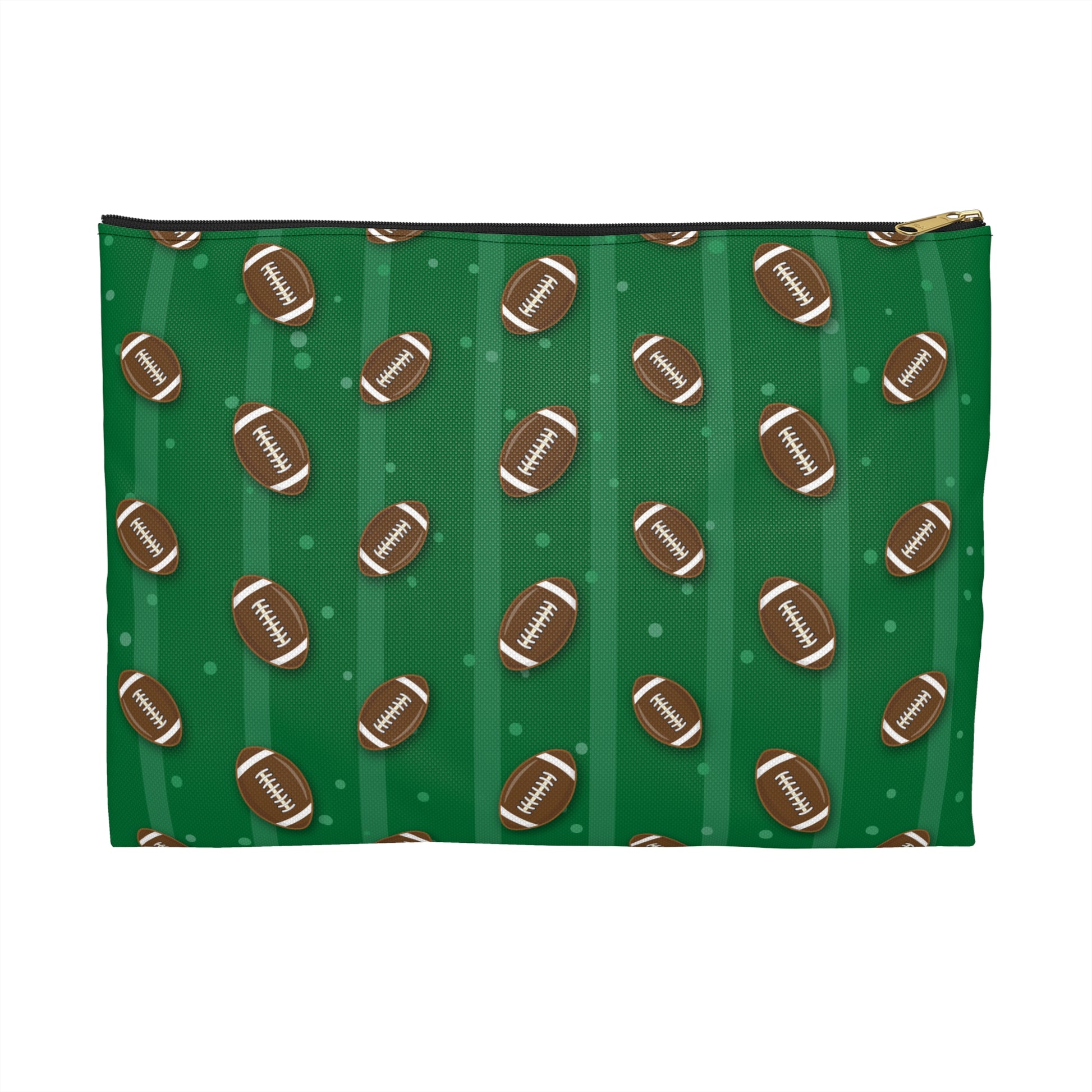 This vibrant accessory pouch is perfect for anyone who loves to keep their essentials stylish and organized. Made from 100% spun polyester, it stays wrinkle-free and retains its shape, ensuring it looks great no matter where you take it. The lively football print brings a fun atmosphere, making it an ideal companion for game day or sports gatherings. It's a thoughtful gift for sports fans or anyone looking to add a pop of color to their day-to-day carry. Suitable for both casual outings and special occasions, this pouch can easily fit into backpacks, purses, or gym bags, adding a playful flair to any ensemble. Whether it's a birthday, holiday celebration, or a special event, this accessory pouch resonates with those wanting to showcase their love for sports and style.