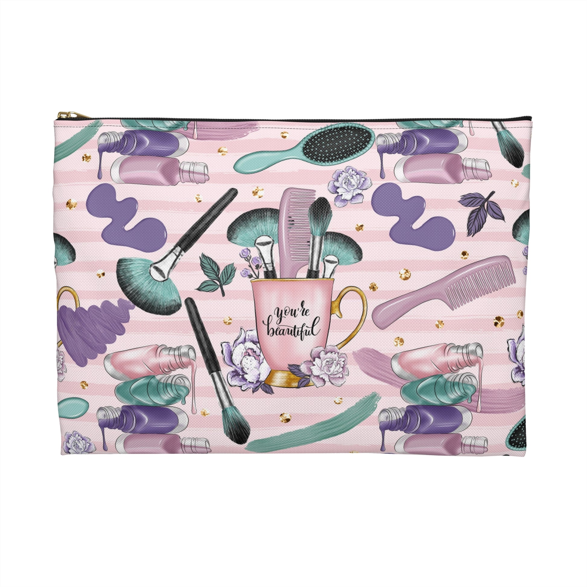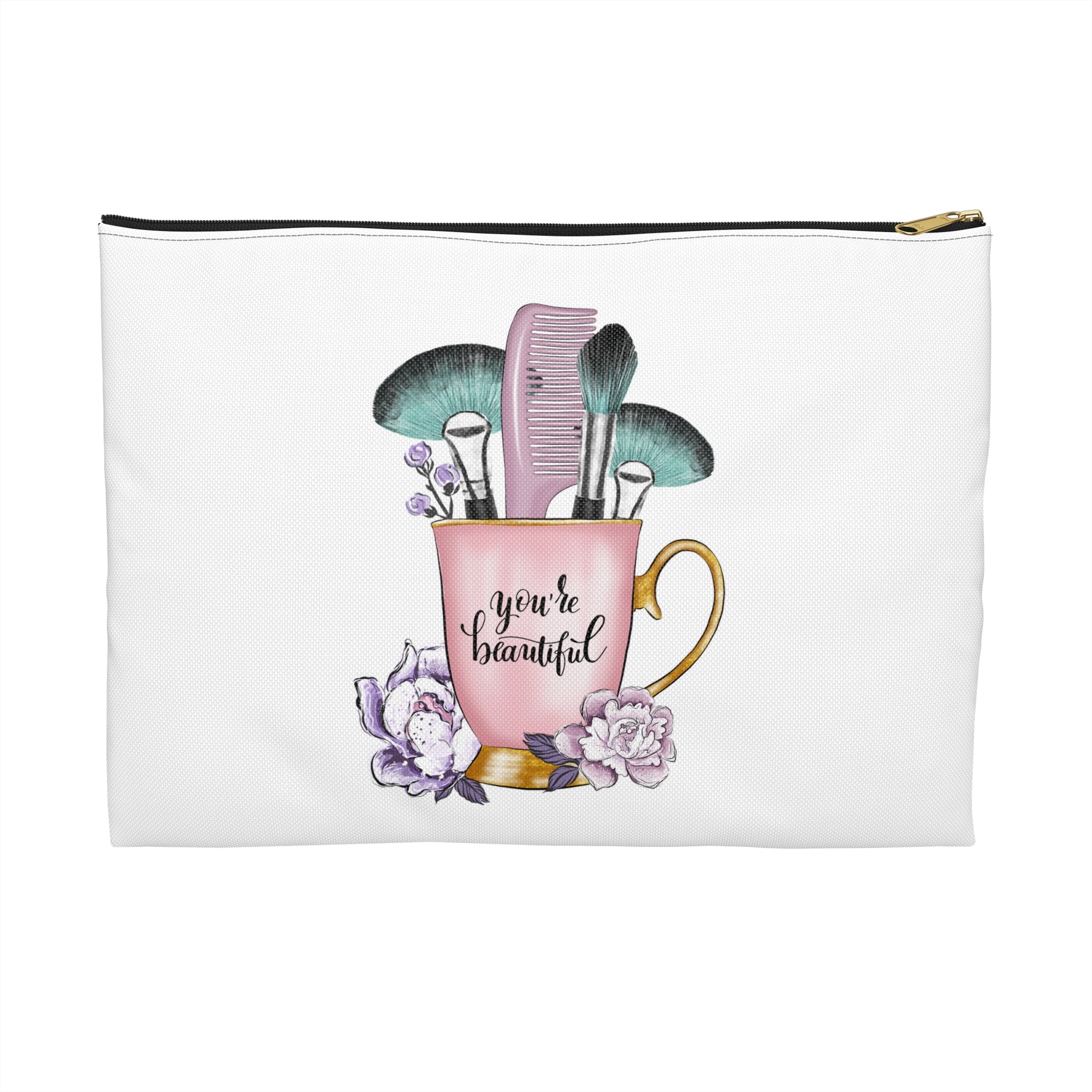 Makeup Accessory Pouch for Beauty Lovers, You're Beautiful Quote, Cosmetic Bag, Gift for Her, Cute Travel Organizer, Floral Design
