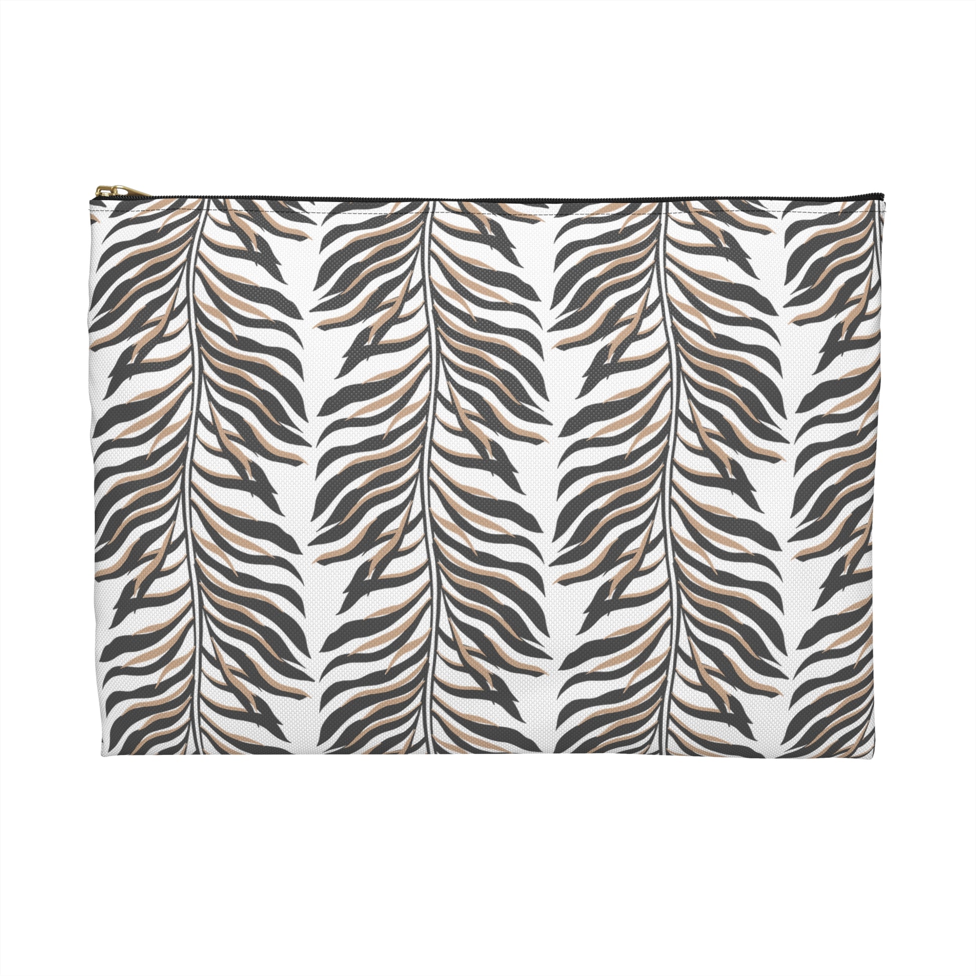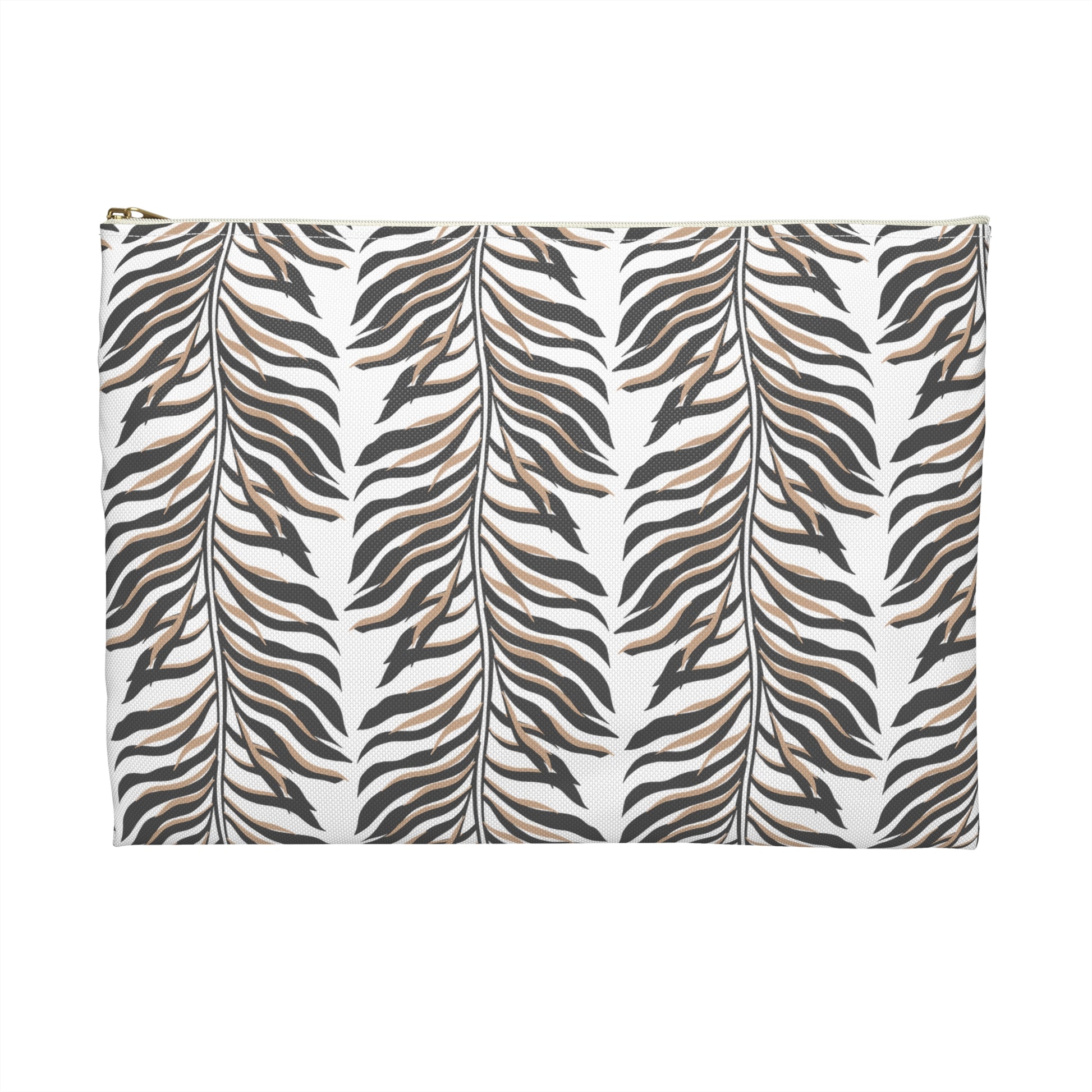 - Features a matching durable zipper closure with a stylish gold puller.